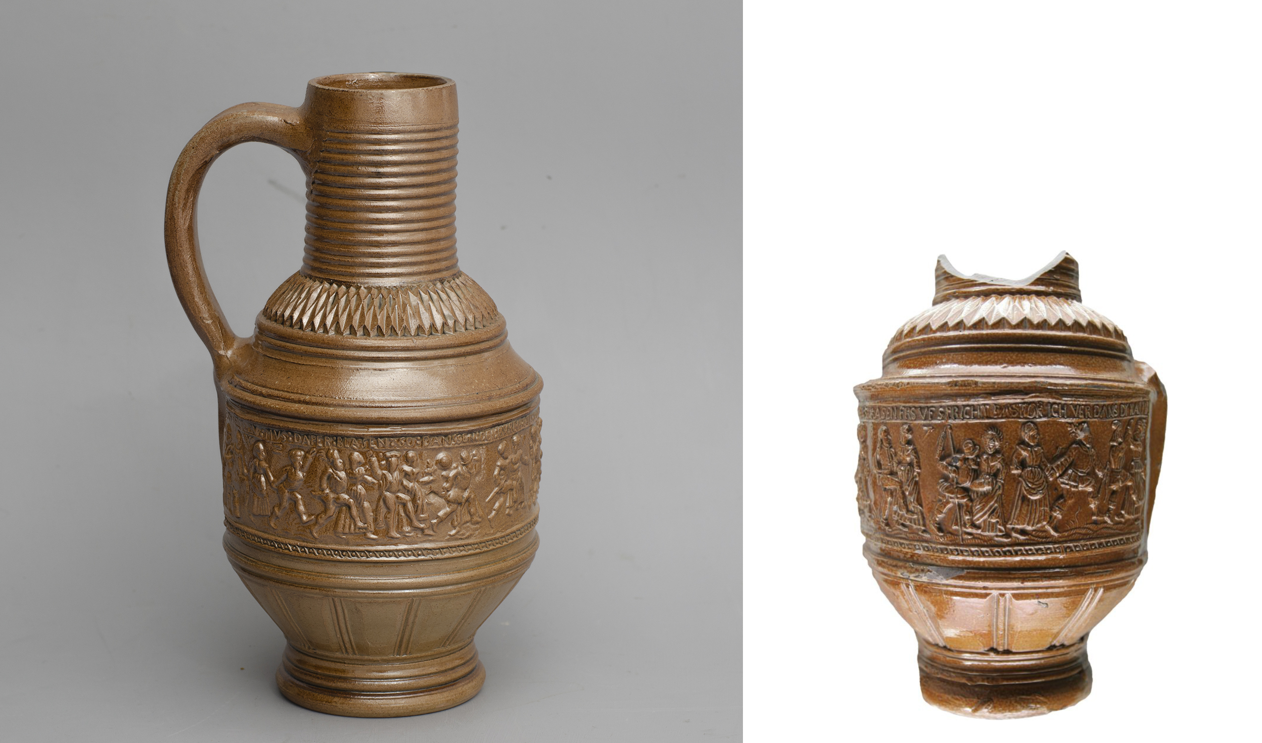 Left: replica jug made by me. Right: an original made in Raeren and found in Emden, Germany.