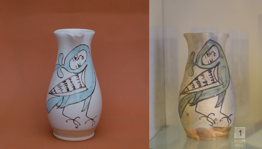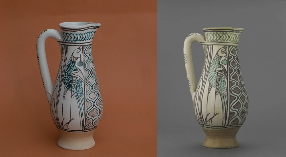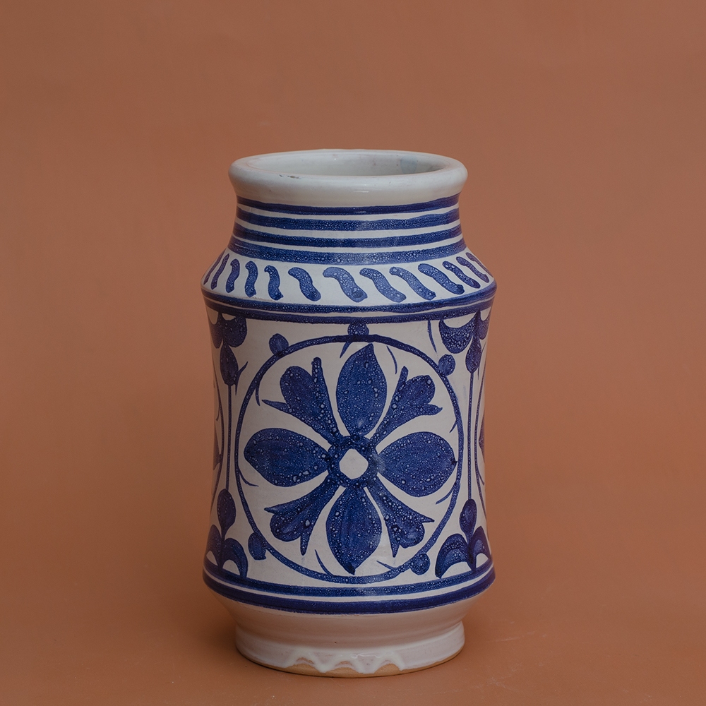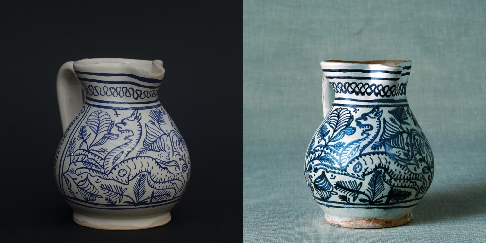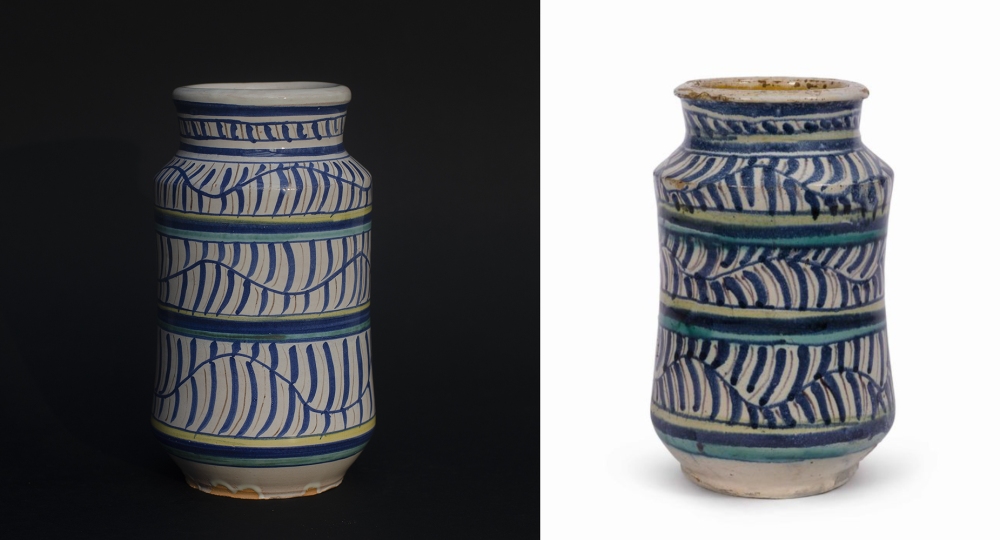 Majolica was first developed in the Middle-East. It’s an earthenware product with a white tin glaze: an ideal ground for metal oxide decorations. In early majolica we often find that cobalt was used for blue, copper for green and manganese for purple. Some majolica in Europe was imported from Arabic countries like Syria but in the 14th century the technique became widely used in both Spain and Italy. Even though majolica was a rare commodity in Germany, the north of France, Flanders and the Netherlands, it often appeared in 15th century paintings, evidence of how much its decorative quality were appreciated. The popularity of majolica would only become stronger in time, resulting in a growing number of majolica workshops opening in cities as far north as Antwerp and Bergen op Zoom in the 16th century, but there is even evidence of majolica tile production in Utrecht as early as the 14th century. Much later, the technique would be adopted by Delft potters, resulting in the famous Delftware.